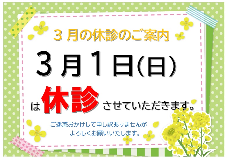3月1日(日)は終日休診させていただきます。